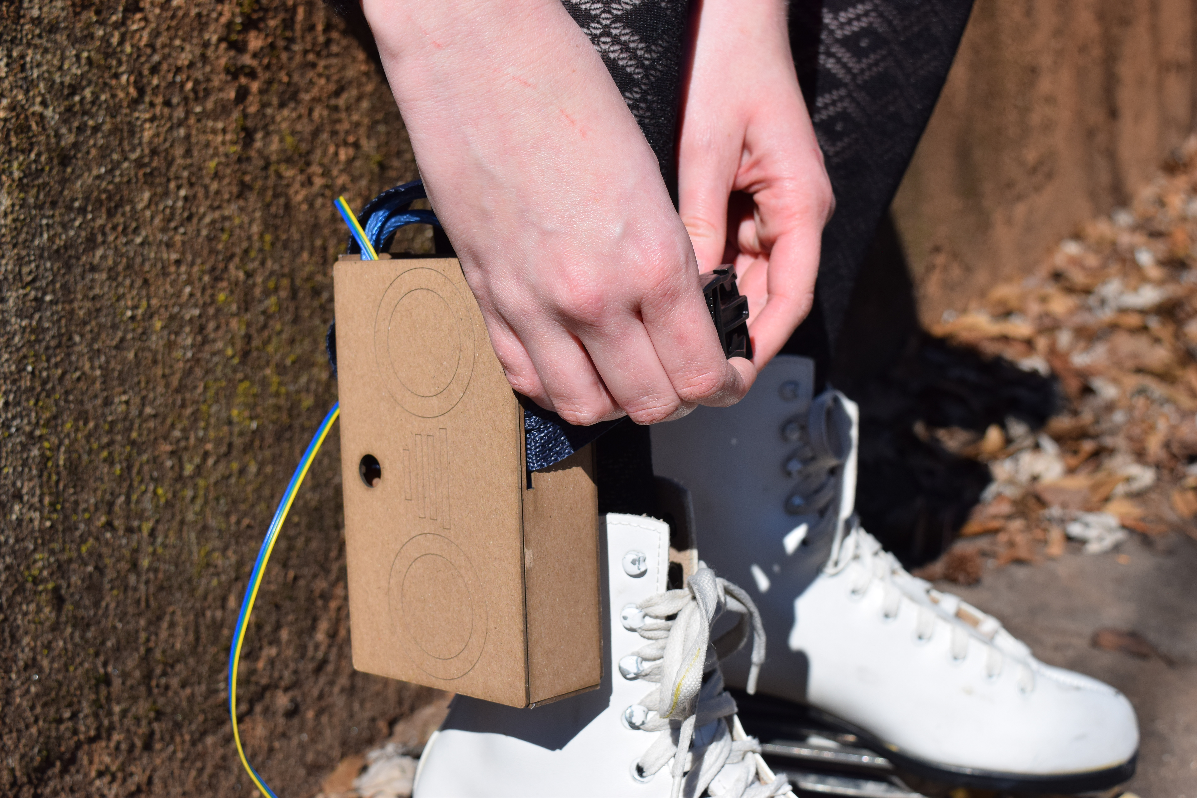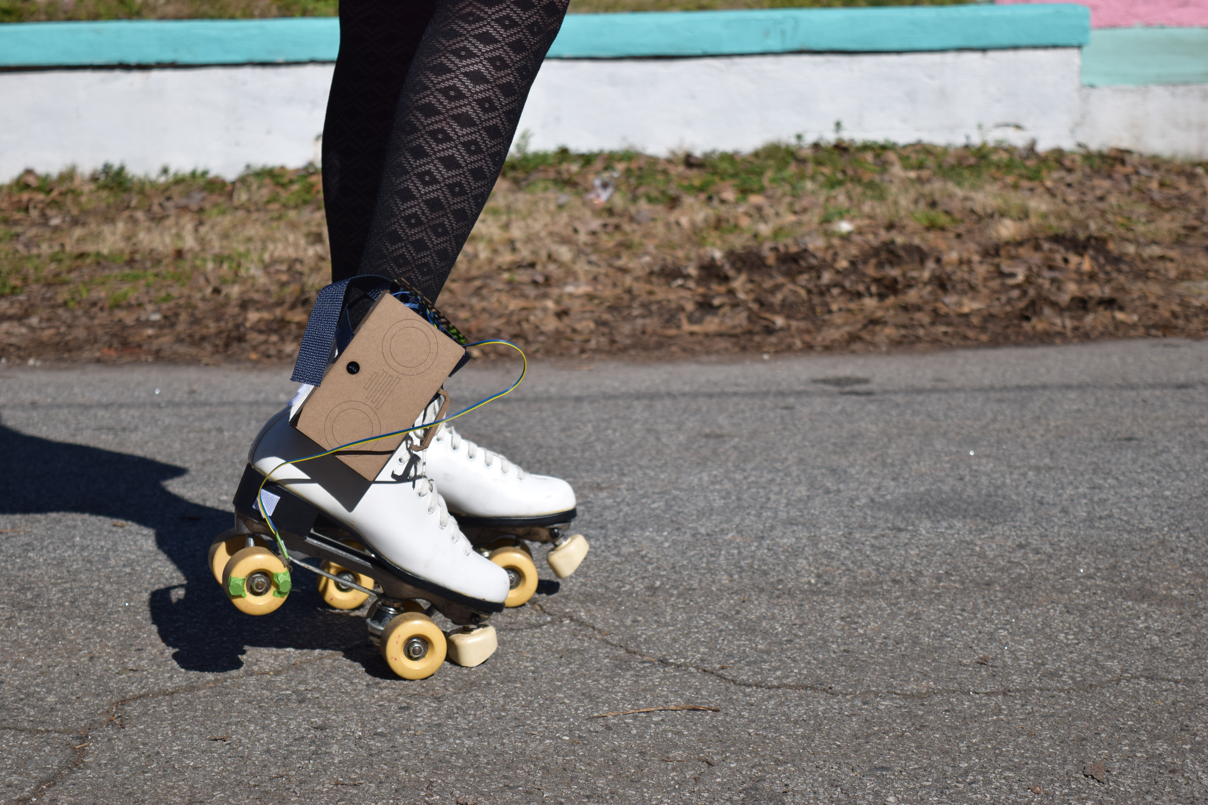 Welcome to the Star Skates! An instant upgrade to any pair of skates, this expressive wearable is a simple clip on and go. The device measures the skaters speed and plays music to match it, the faster you go, the faster the music plays!