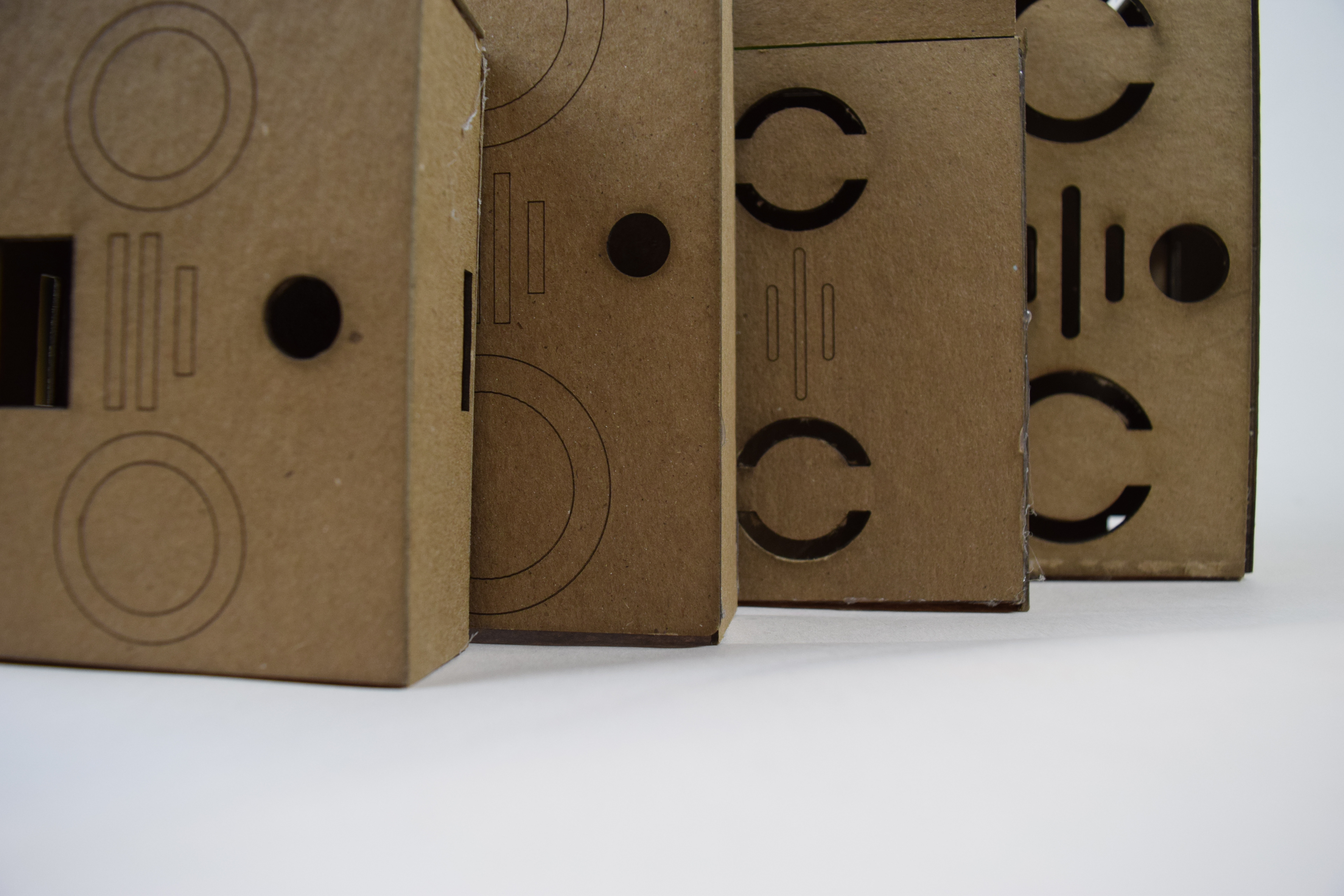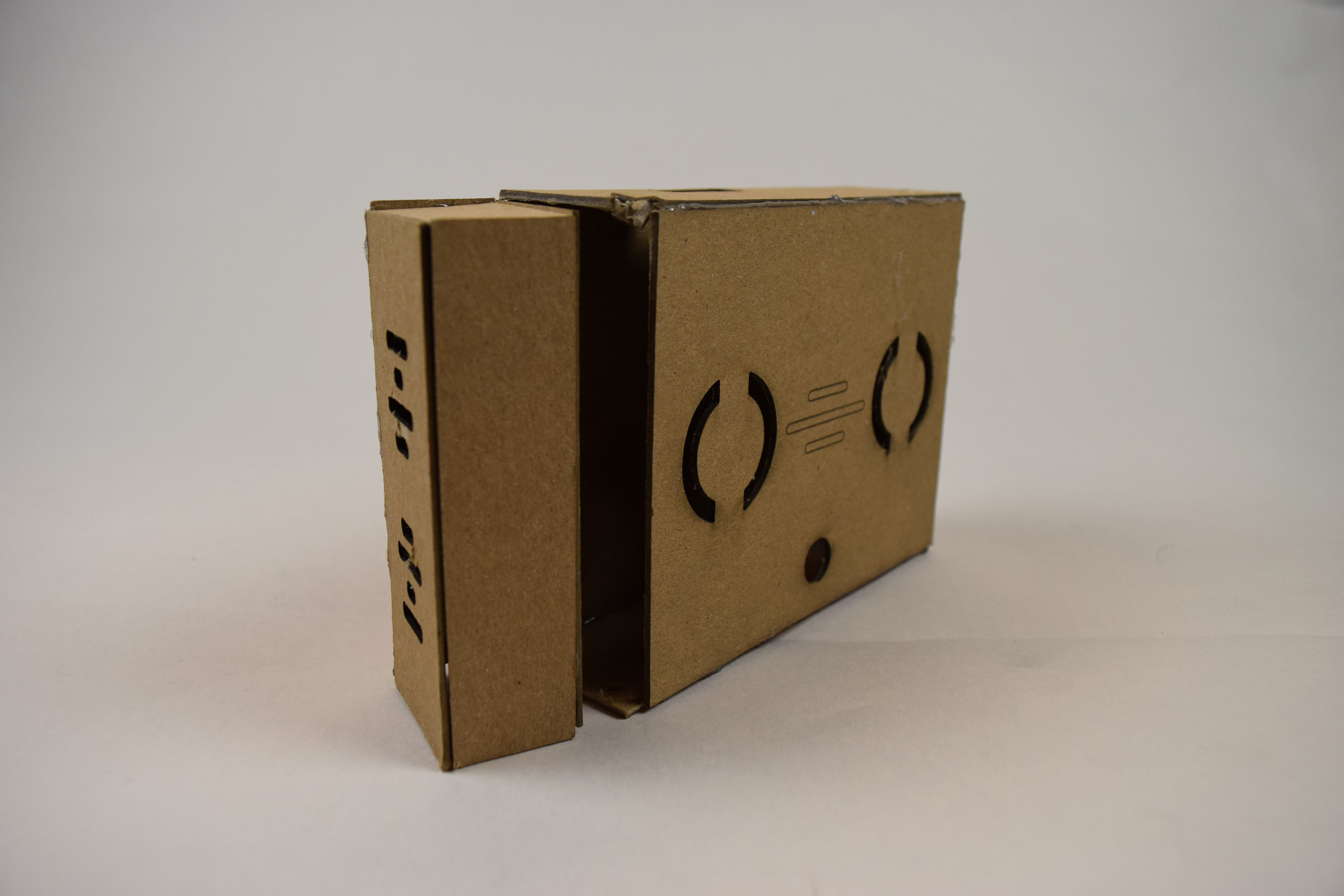The prototyping process saw several iterations before reaching a final design. Each prototype though varying only a little in shape, became smaller and considered finer details such as wires and battery storage. Along the way access to the Arduino for testing and a strap to allow the user to wear the device were added as well.